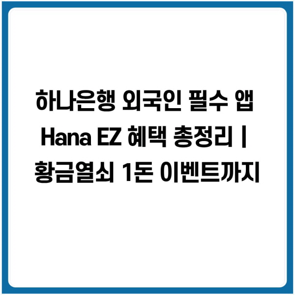 이 글에서는 Hana EZ란 무엇인지, 어떤 혜택과 기능이 있는지, 그리고 이벤트 내용까지 한 번에 정리해 드리겠습니다.